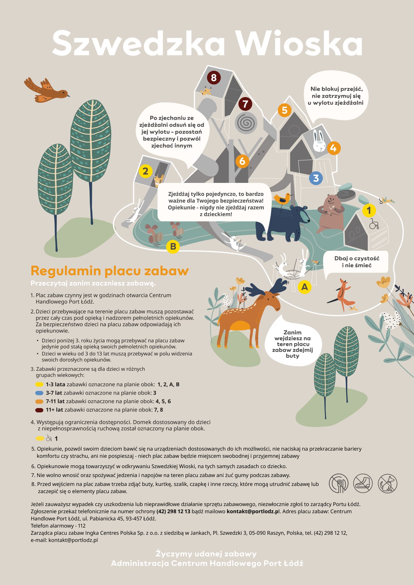 Szwedzka Wioska została zaprojektowana tak, by odpowiadać na potrzeby różnych grup wiekowych. Na najmłodsze dzieci w wieku od 1 do 3 lat czeka bliska ziemi zabawa - domki, elementy dotykowe, niskie zjeżdżalnie, bujaki, wszystko wspierające rozwój małej motoryki i pierwszych interakcji.