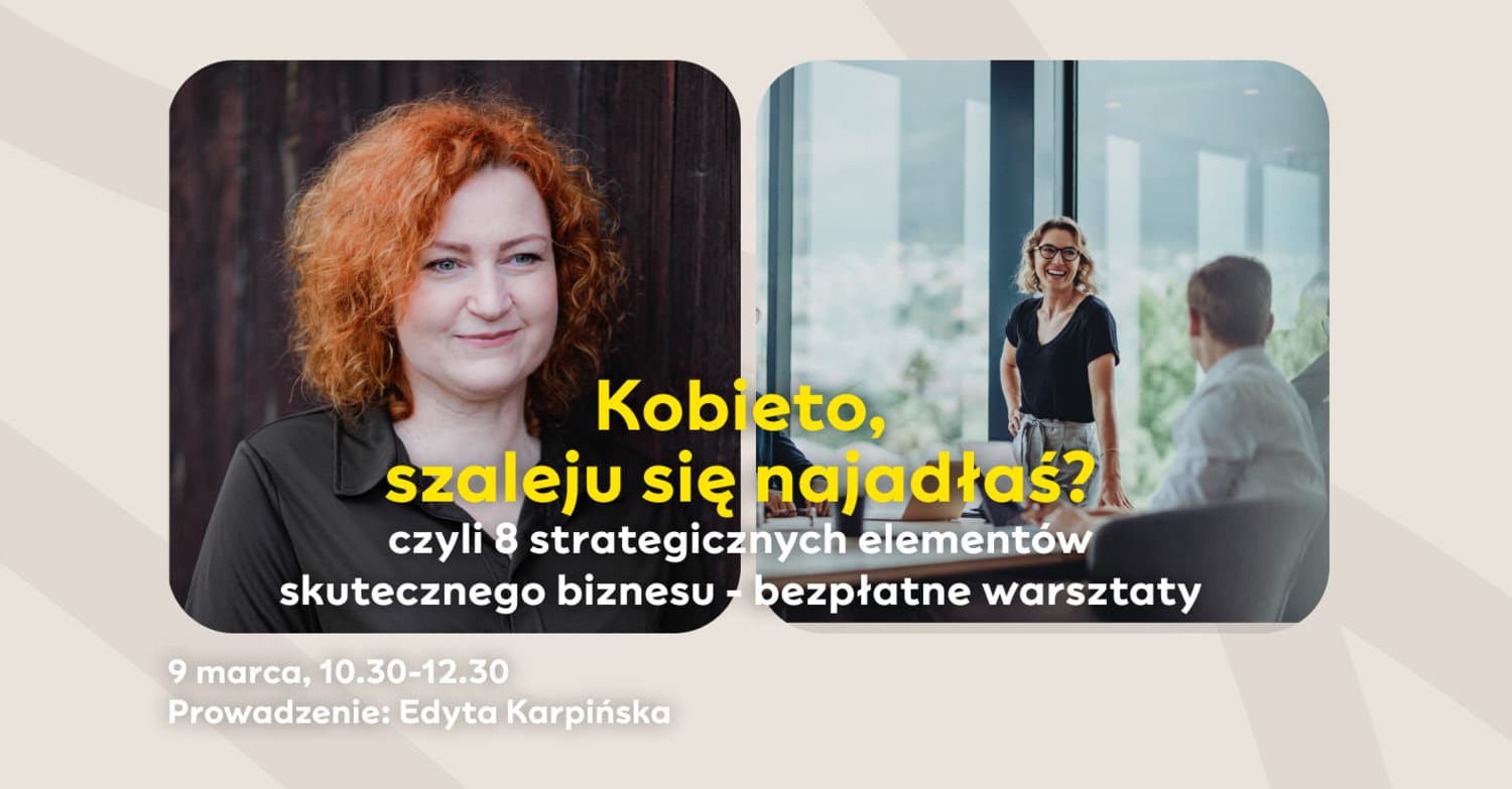 Sobota, 9 marca, godz. 12.00-18.00Zakładam własny biznes - "Kobieto! Szaleju się najadłaś?", czyli 8 strategicznych elementów skutecznego biznesu