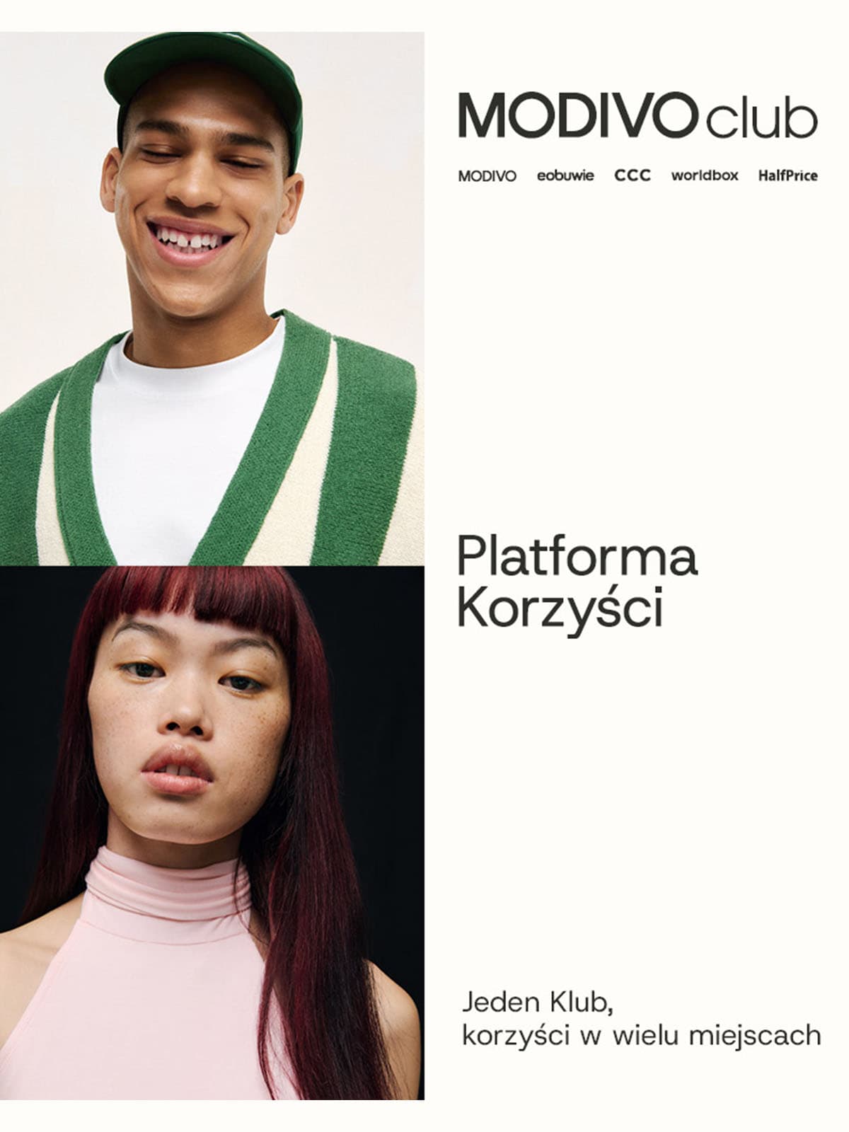 Zakupy w MODIVO, eobuwie, CCC, HalfPrice i worldbox stają się jeszcze wygodniejsze! Wszystkie dotychczasowe programy lojalnościowe łączą się w jeden wspólny Klub – MODIVOclub. To oznacza jeszcze więcej korzyści, dostęp do specjalnych promocji oraz ofert wszystkich marek w jednym miejscu.