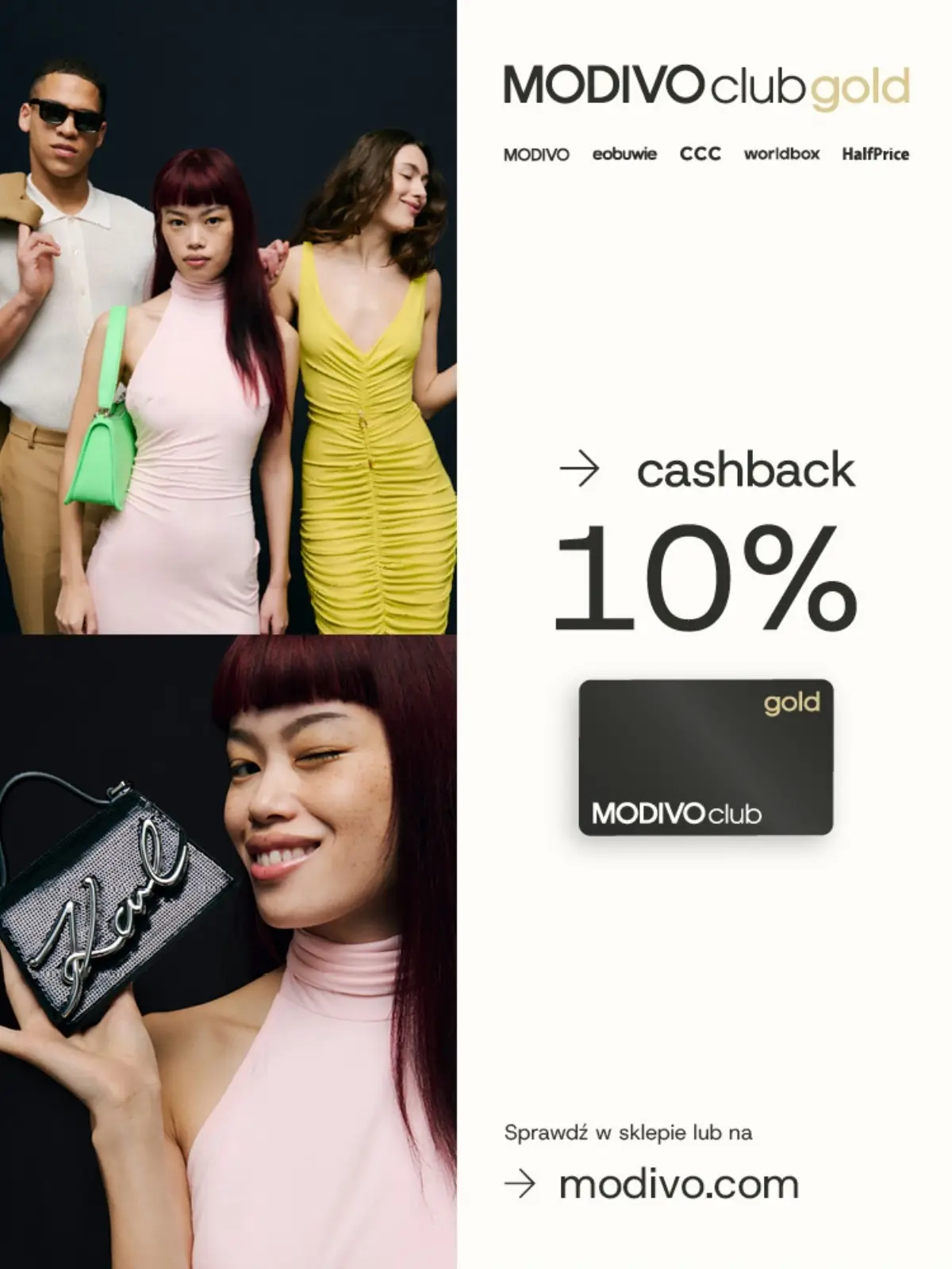 10% zwrotu za każde zakupy w MODIVO, eobuwie, CCC i HalfPrice, który można wykorzystać na kolejne zakupy.