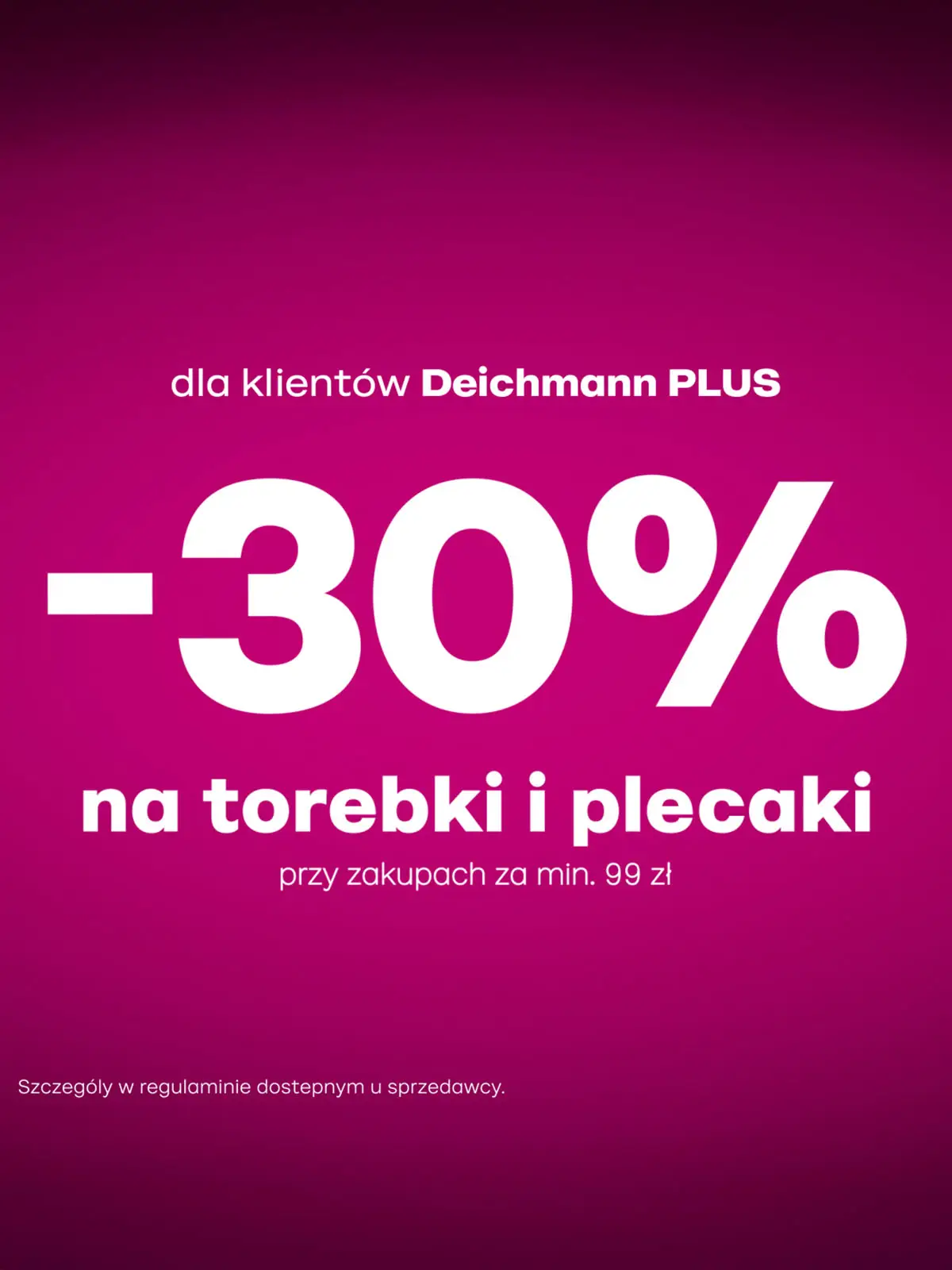 Teraz w DEICHMANN torebki i plecaki przy zakupach za min. 99 zł dla klientów Deichmann PLUS z rabatem 30%!