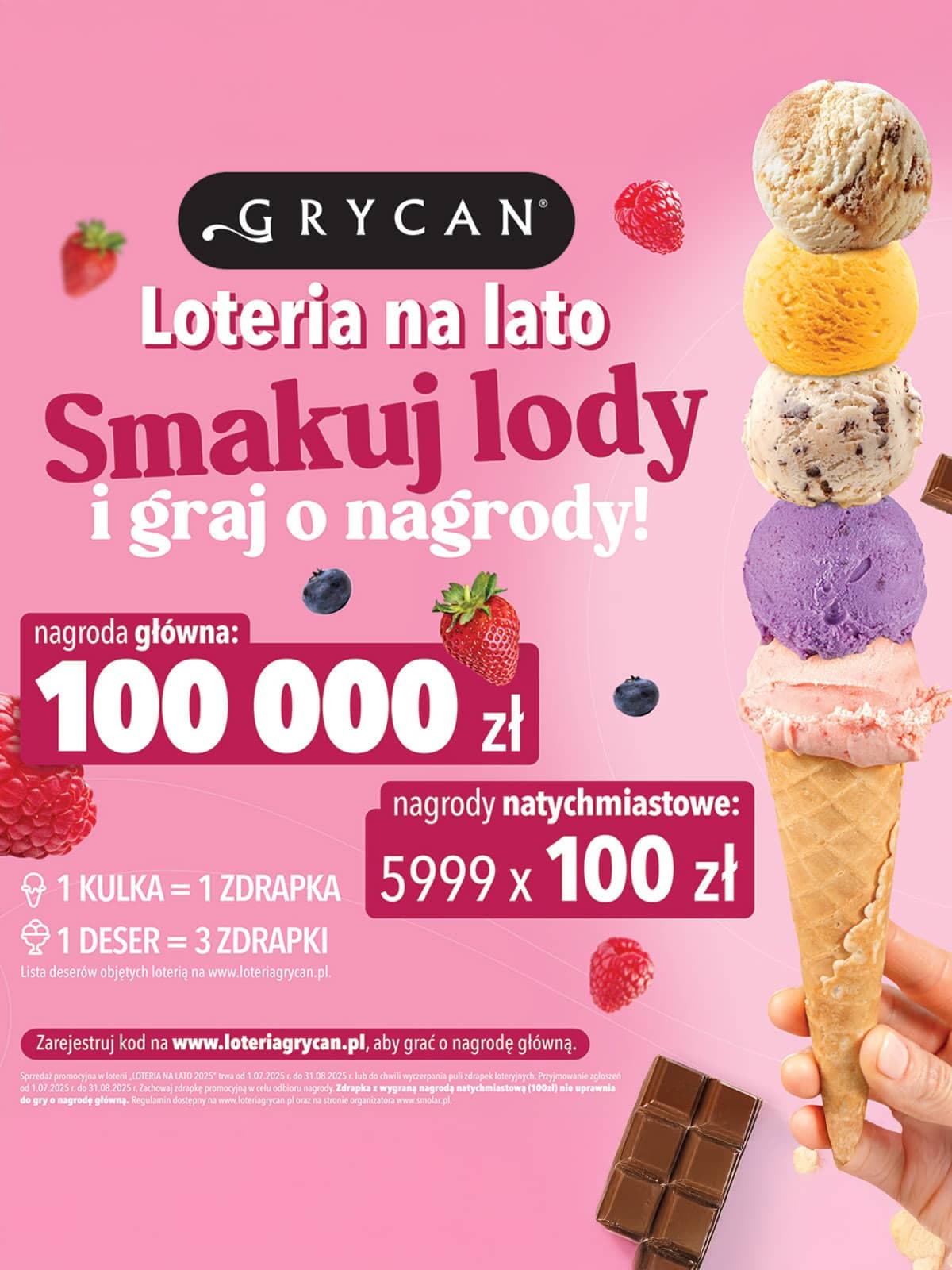 Regulamin dostępny na www.loteriagrycan.pl oraz na stronie organizatora www.smolar.pl.