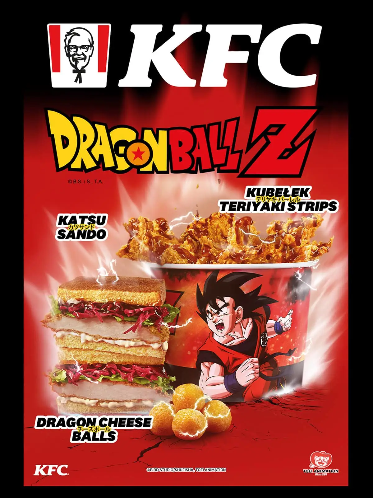 Nowa oferta KFC x Dragon Ball Z wbija z mocą jak full power! 🔥 Katsu Sando 🥪, Kulki Serowe 🧀 i Kubełek Teriyaki 🍗 — trzy levele smakowej przemiany. 🥋💥⚡ Spróbuj już dziś!