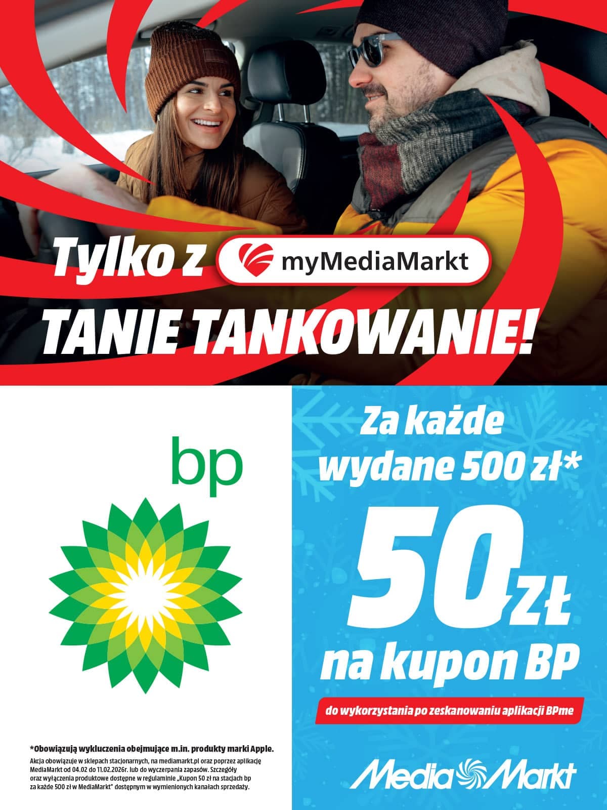 Tylko z myMediaMarkt – za każde wydane 500 zł otrzymasz 50 zł na kupon BP do wykorzystania po zeskanowaniu aplikacji BPme.