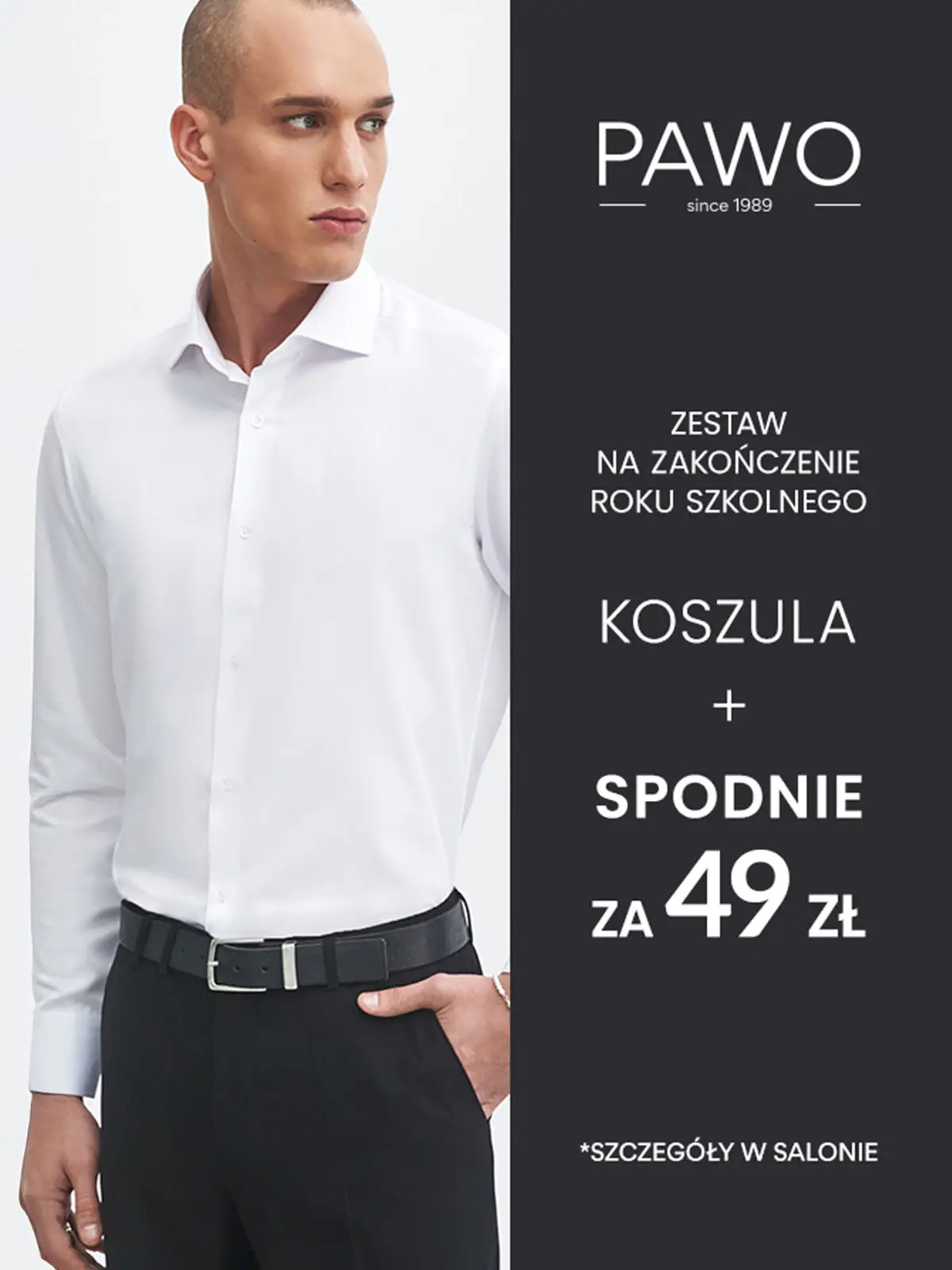 Tylko teraz, w salonach PAWO, przy zakupie klasycznej białej koszuli możesz dobrać wybrane spodnie za jedyne 49 zł!