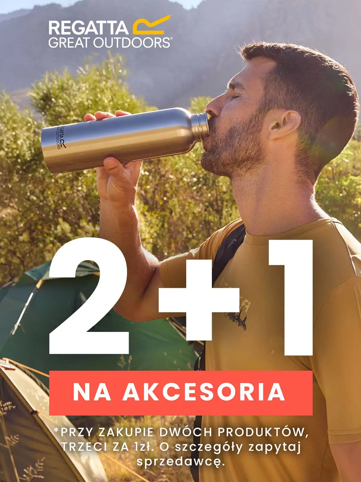 Tylko teraz w sklepach Regatta promocja 2+1 na akcesoria! Przy zakupie dwóch produktów, trzeci za 1 zł. O szczegóły zapytaj sprzedawcę!