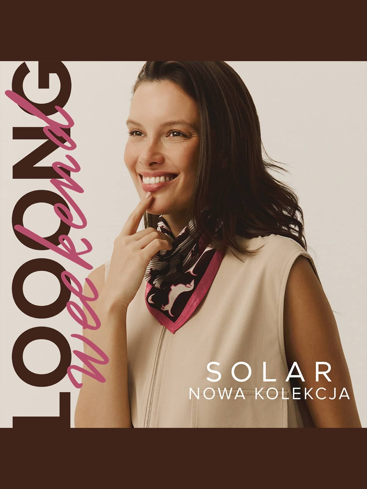 Looong Weekend to kolekcja zaprojektowana w rytmie spokojnych poranków, długich spacerów i codzienności bez pośpiechu. Miękkie t-shirty, luźniejsze fasony i pikowana kurtka tworzą bazę garderoby gotowej na różne scenariusze dnia. Do kolekcji wracają skórzane torby, a zupełną nowością są chusty dla psa, bo Solar to miejsce przyjazne także Twojemu pupilowi. Autorski motyw jamnika przypomina, że komfort, jakość i charakter mogą iść w parze.