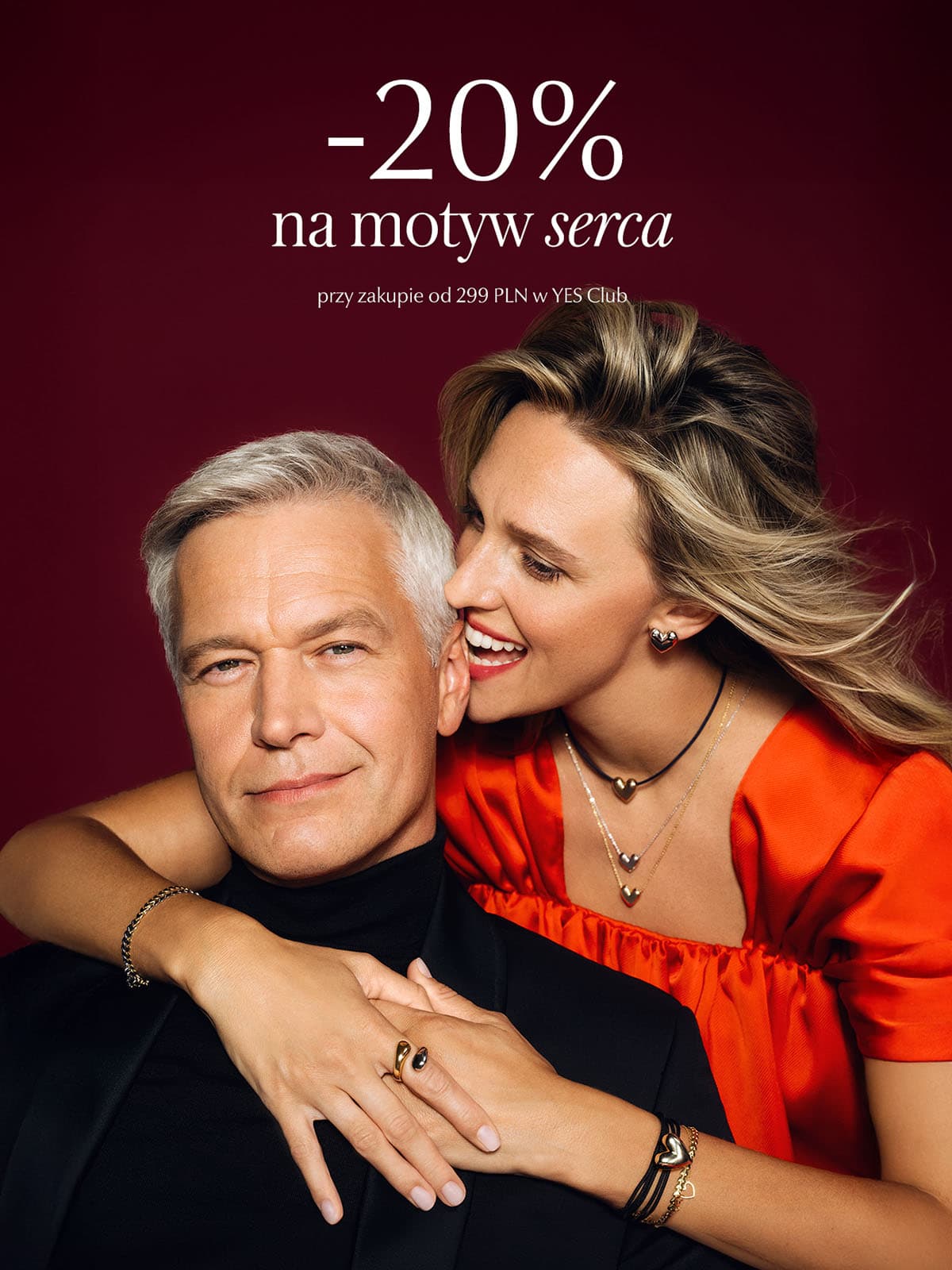 Wybierz biżuterię z motywem serca i zyskaj -20% rabatu, robiąc zakupy za min. 299 PLN. Powiedz „kocham” w stylu YES.