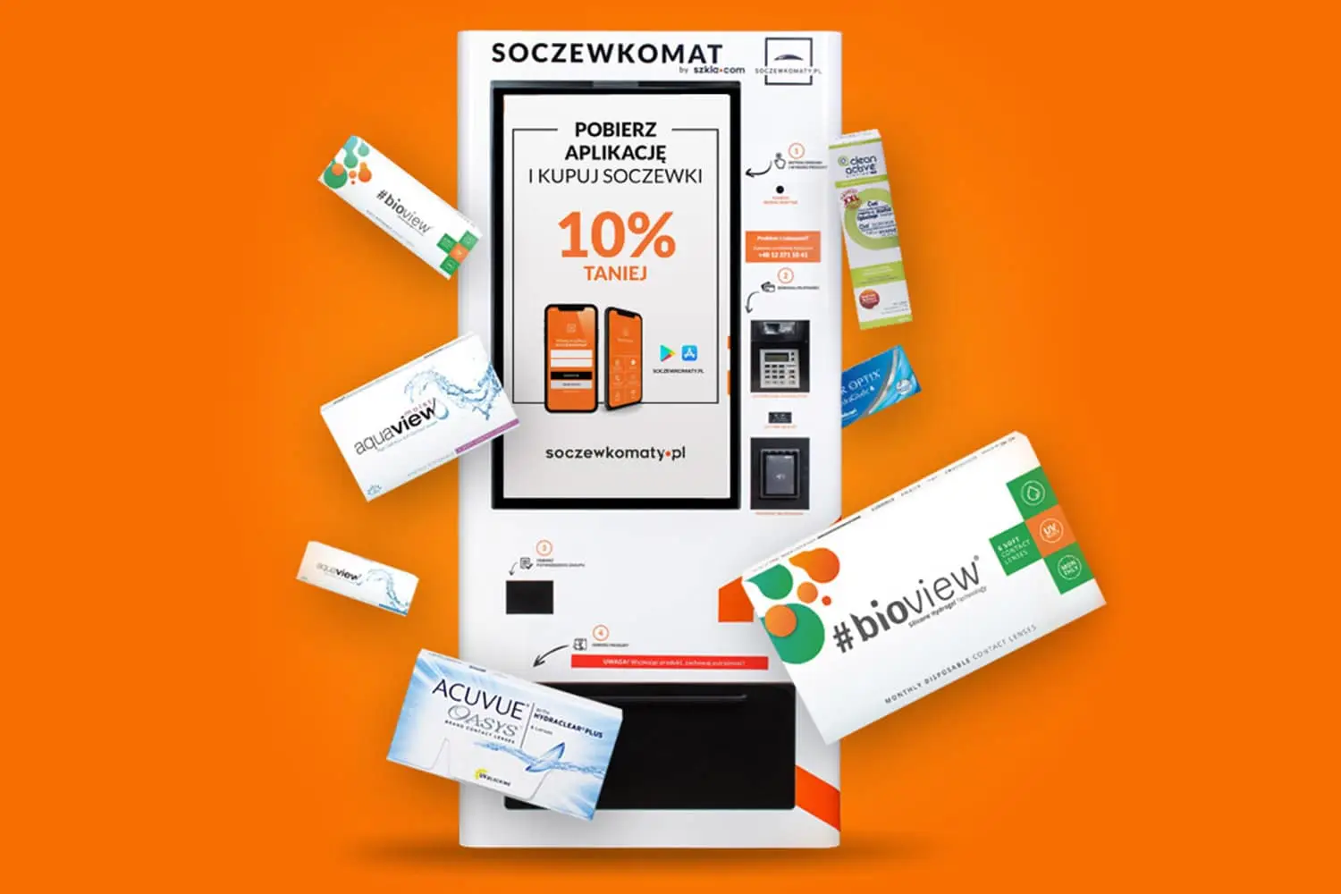 Soczewkomat zawiera niemal 350 różnych produktów – soczewki kontaktowe najbardziej znanych i renomowanych producentów (takich jak Acuvue, Air Optix, Biofinity, FitView, AquaView) płyny i akcesoria. Za...