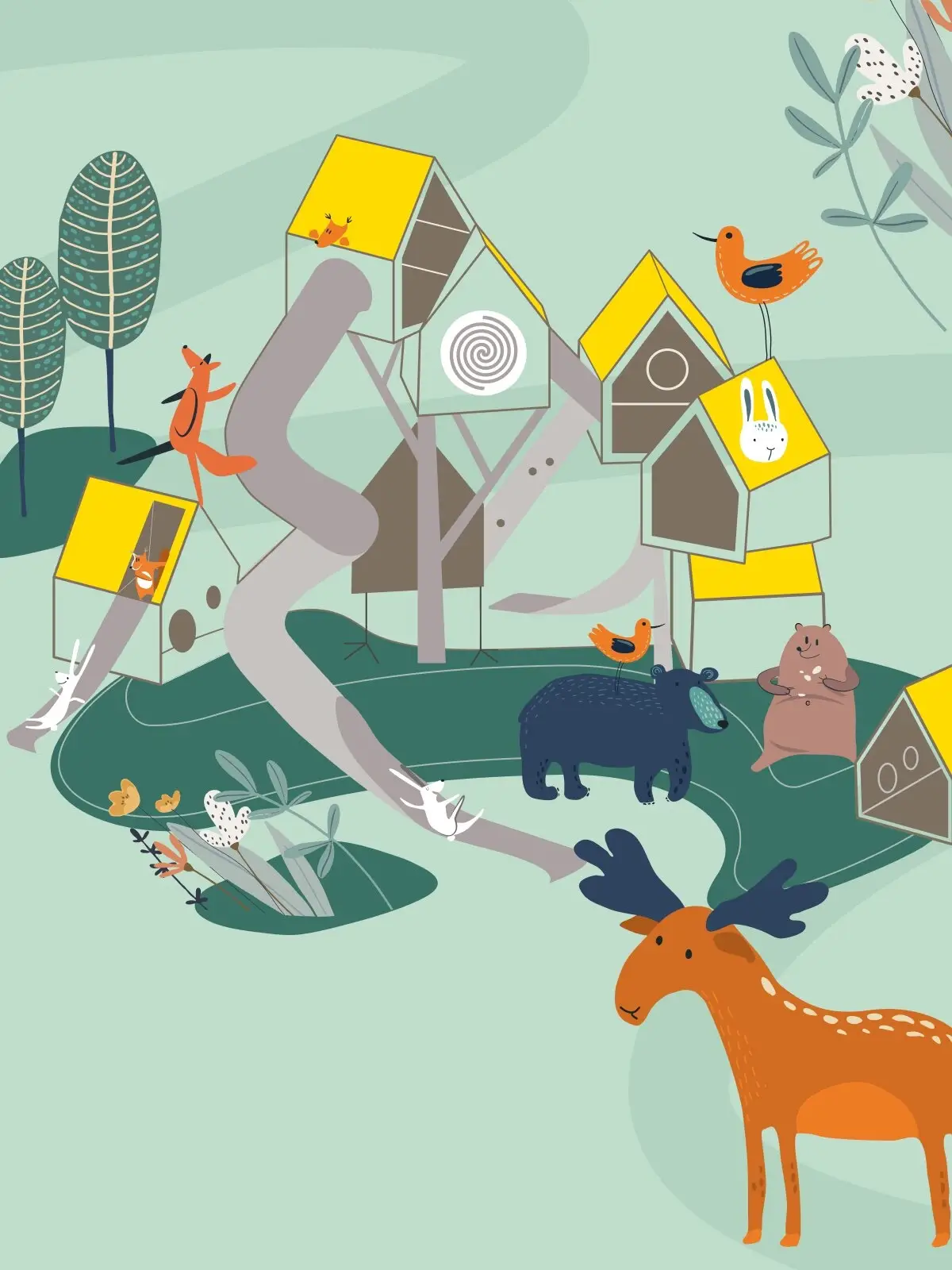 Szwedzka Wioska została zaprojektowana tak, by odpowiadać na potrzeby różnych grup wiekowych. Na najmłodsze dzieci w wieku od 1 do 3 lat czeka bliska ziemi zabawa - domki, elementy dotykowe, niskie zjeżdżalnie, bujaki, wszystko wspierające rozwój małej motoryki i pierwszych interakcji.