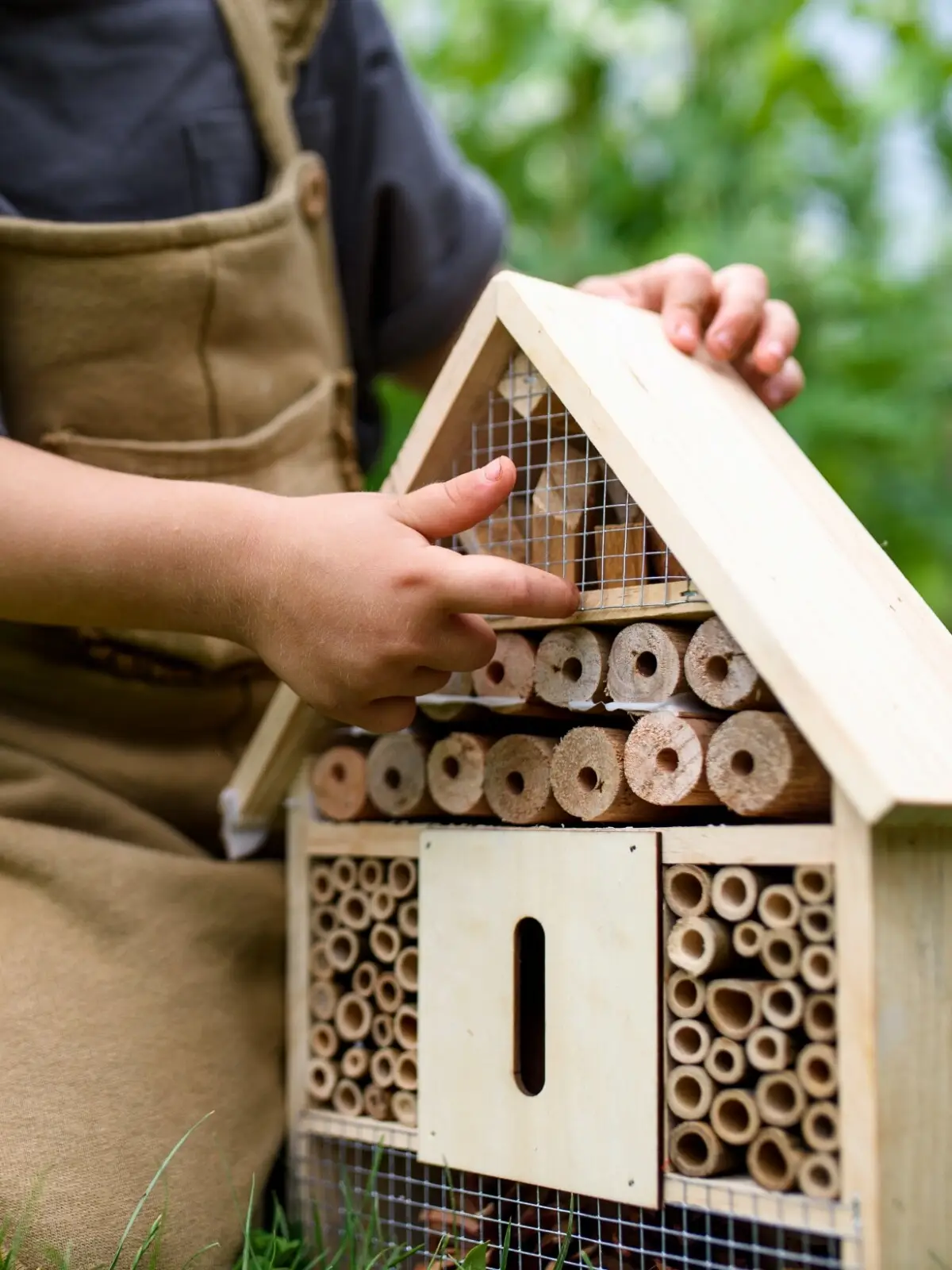 👉🏻 Wypełnicie domki słomą, patyczkami, rurkami trzcinowymi i innymi materiałami, które sprzyjają różnorodności owadów, które tam zamieszkają.