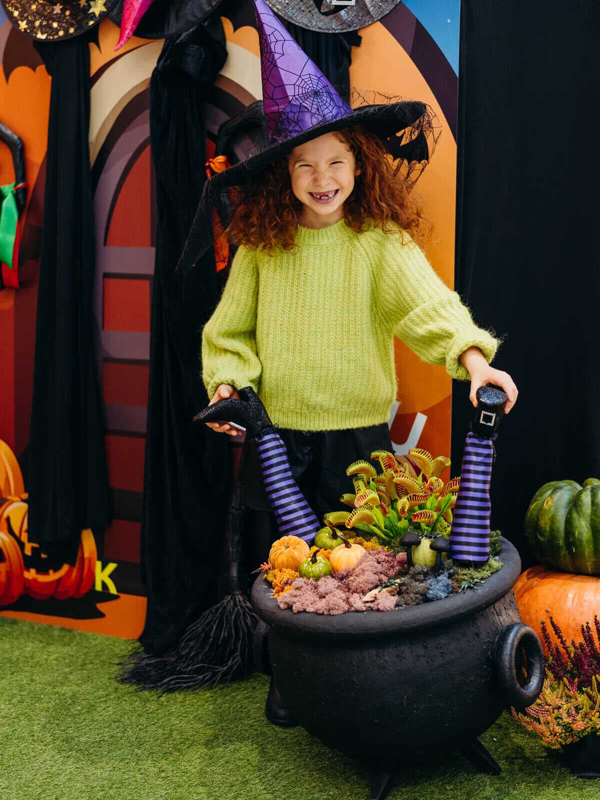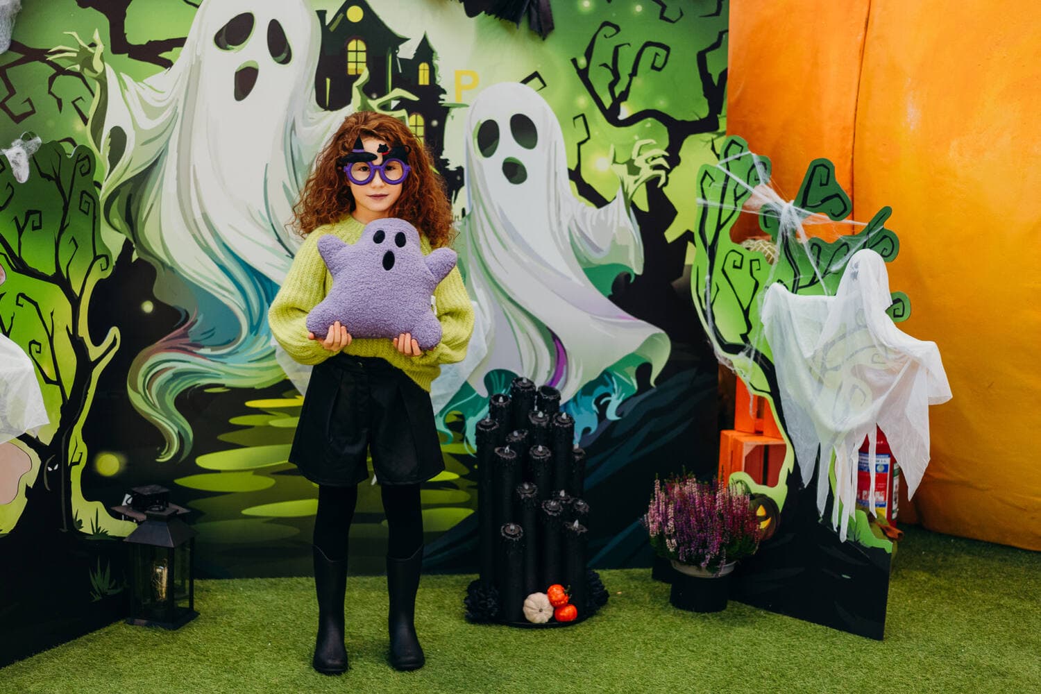 W tym roku sercem naszej halloweenowej dekoracji jest wielka dynia, która stała się tłem dla wyjątkowej strefy selfie — kolorowej krainy duchów, czarownic i potworów o wielkich sercach! To idealne miejsce, by dzieci mogły wcielić się w swoje ulubione postacie i poczuć się jak bohaterowie strasznych (ale sympatycznych!) opowieści.
