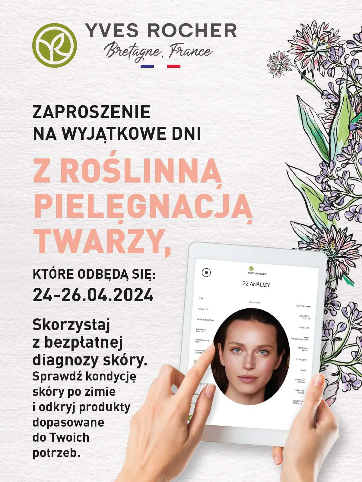 W dniach 24-26 kwietnia przyjdź do salony Yves Rocher i skorzystaj z bezpłatnej diagnozy skóry.